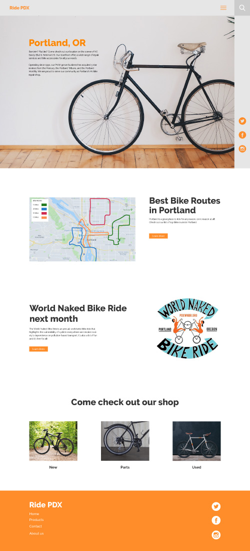 Ride PDX, a local bike shop in Portland Oregon since 1990, Strives to increase the number of bike commuters to make a better community. They are not interested in eCommerce, they want the help people know about upcoming events, best bike routes, and want people to visit their physical store front.
